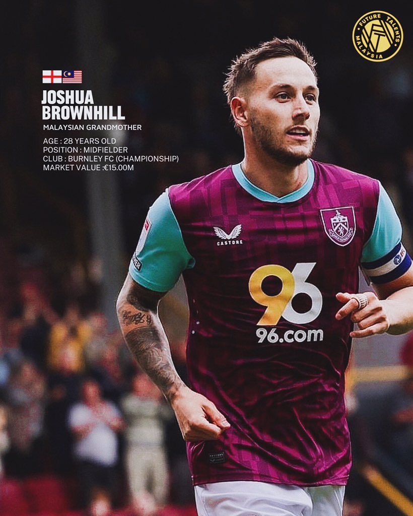 国足劲敌?伯恩利中场布朗希尔愿考虑归化马来西亚,身价1500万欧
