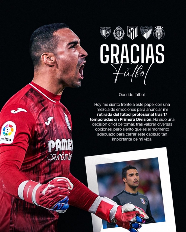 7月28日讯 据《阿斯报》报道,前比利亚雷亚尔和马德里竞技门将塞尔吉奥·阿森霍在社交媒体上宣布退役。