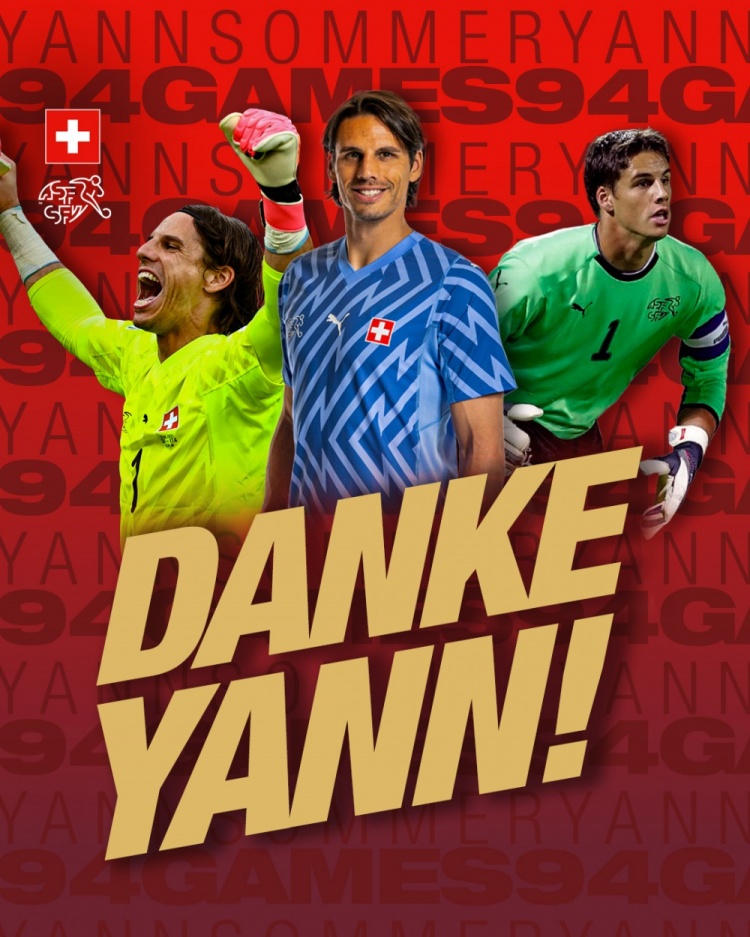 瑞士国家队官方社交媒体发布了一张为索默制作的海报,确认他从国家队退役,并感谢他过去12年的贡献。